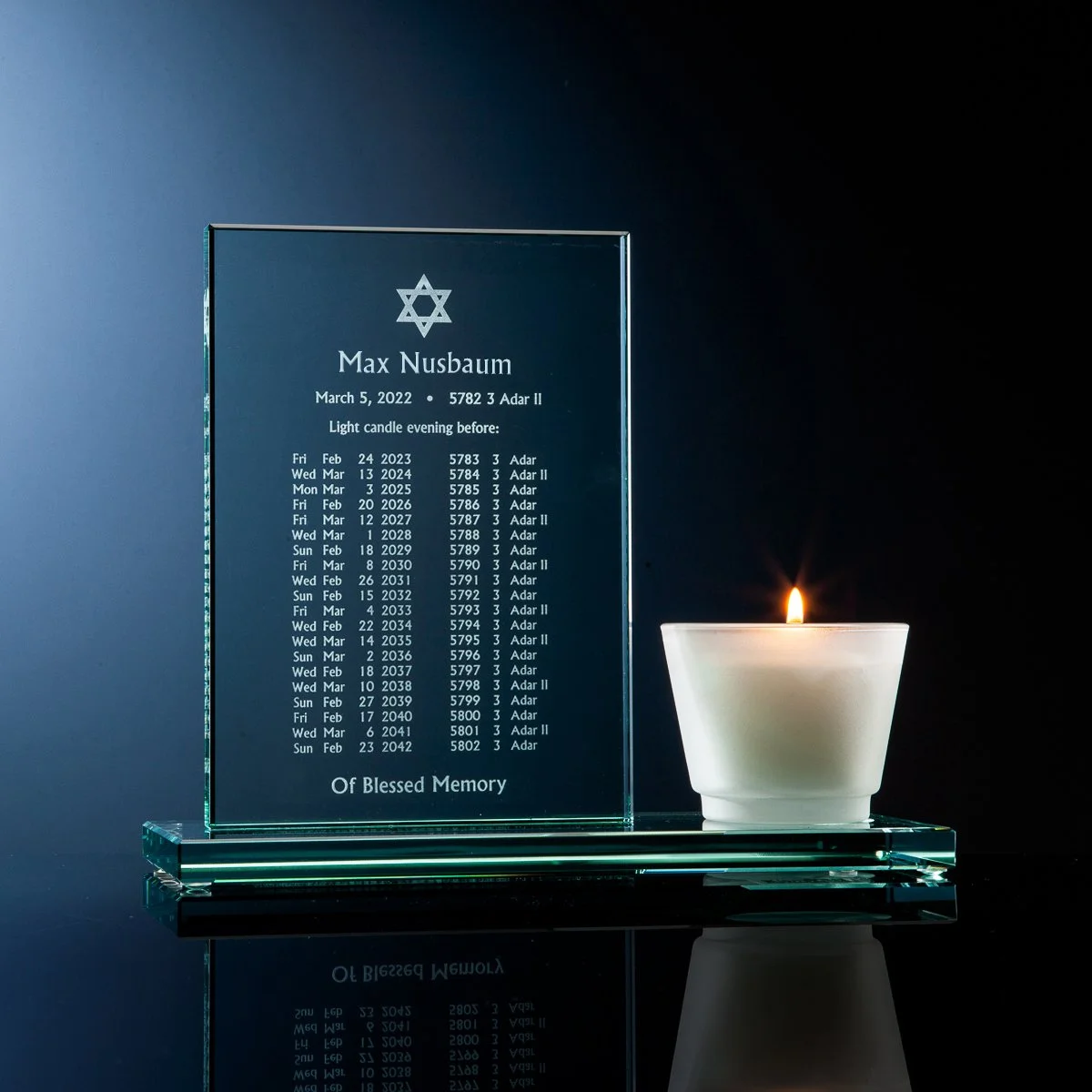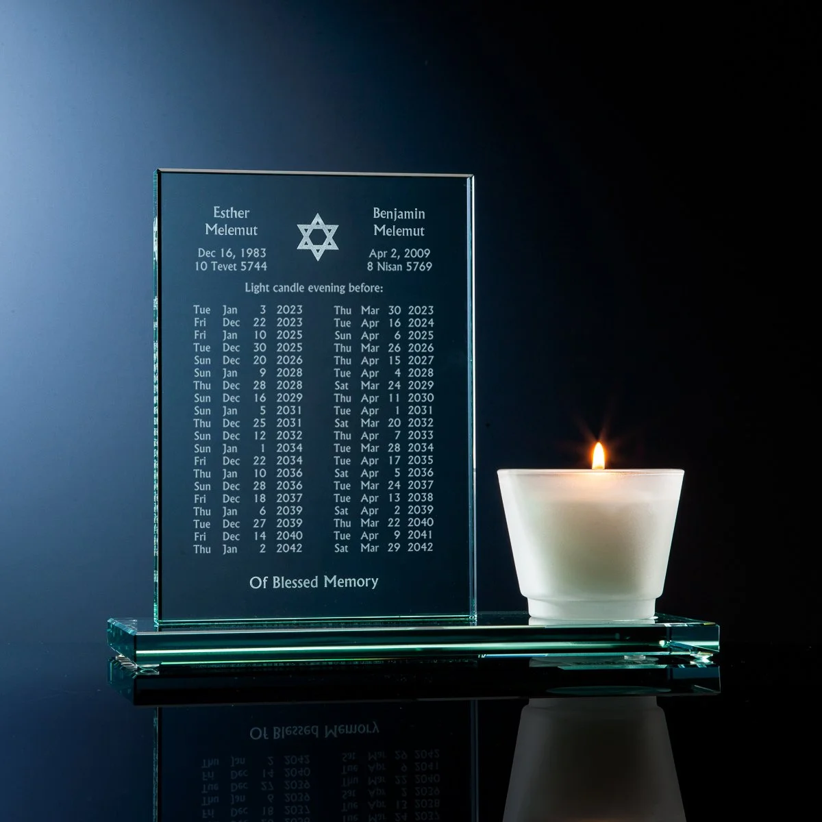 Inspired by the Jewish tradition of yahrzeit, this elegant calendar honours memory through the ritual of light — adaptable for any tradition.